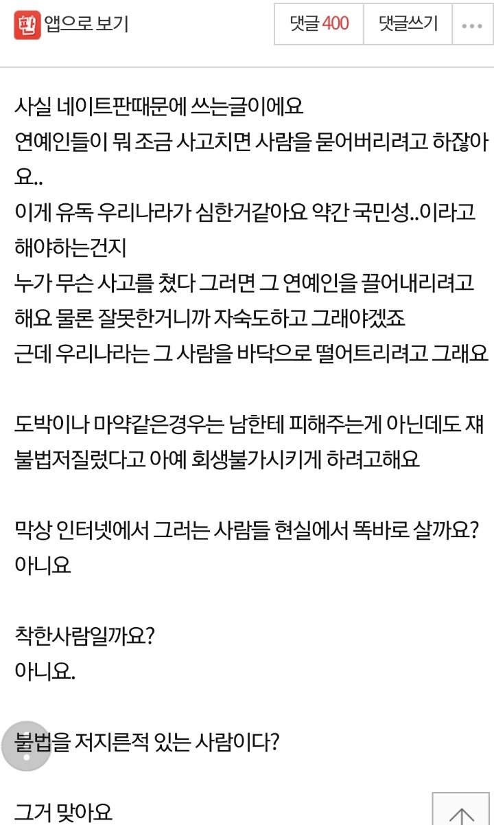 그런데 잘못한사람 잘걸렸단 식으로 죽일듯이 달려들어 회생불가상태로 만드는건 잘못한거임 -