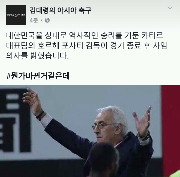 카타르-대한민국 경기 종료 후 전격 사임 발표 작성자클로이 베넷|작성시간17.06.14|조회수23,901 목록 댓글 25 글자크기 작게가 글자크기 크게가 카타르 감독이 사임 다음검색 현재 게시글 추가 기능 열기 북마크 공유하기 신고 센터로 신고 댓글 댓글 25 댓글쓰기 답글쓰기 댓글 리스트 작성자이명주 | 작성시간 17.06.14 왜 니가 나가! 작성자TWICE@다현 | 작성시간 17.06.14 뭐지 작성자대우 로얄즈 | 작성시간 17.06.14 띠용? 작성자chris | 작성시간 17.06.14 복수할 기회를 안주네ㅋㅋㅋㅋ 작성자농구 | 작성시간 17.06.14 포사티를 데려와라 그냥 댓글 전체보기