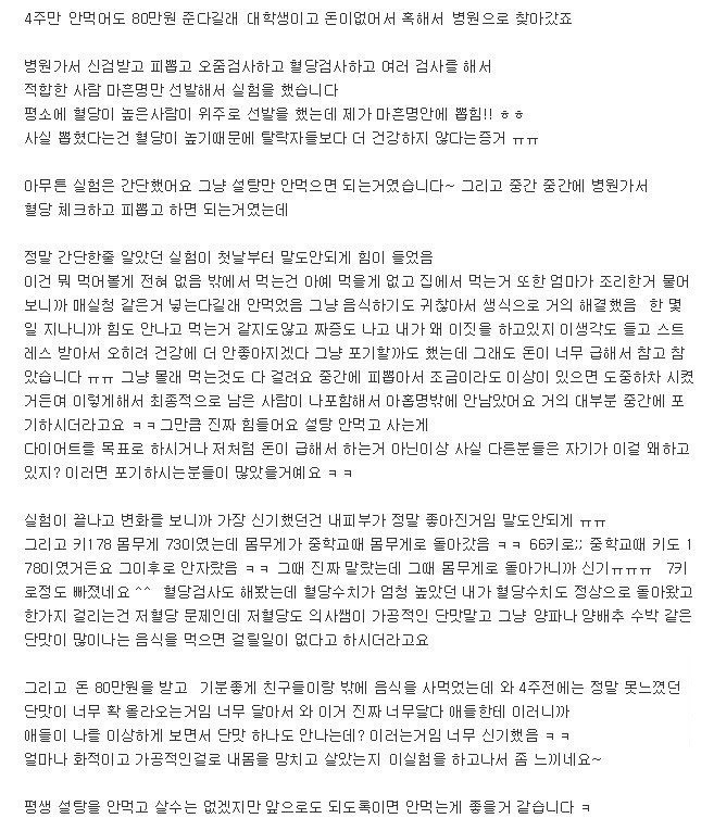 작성자Ryan Joseph Giggs 작성시간 17.07.03 설탕 포함 당 섭취 거의 안했더니 두달 새 15kg 빠짐