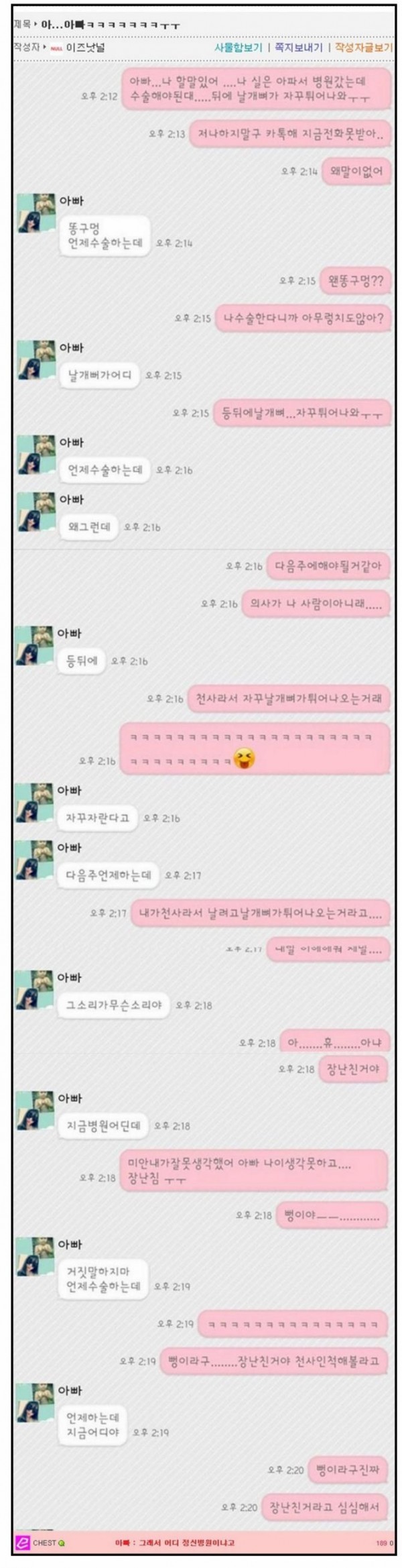 센스쟁이 아빠 작성자Leonardo Bonucci|작성시간16.07.01|조회수1,650,511 목록 댓글 6 글자크기 작게가 글자크기 크게가 ㅋㅋㅋㅋ 다음검색 현재 게시글 추가 기능 열기 북마크 공유하기 신고 센터로 신고 댓글 댓글 6 댓글쓰기 답글쓰기 댓글 리스트 작성자작안의 샤나 | 작성시간 16.07.01 일부러 그러시는듯ㅋㅋㅋ 작성자서초구 | 작성시간 16.07.01 ㅋㅋㅋ 그래서 어디 정신병원이냐고ㅋㅋㅋ 작성자Tottenham | 작성시간 16.07.01 날개 진짜 엔젤인가? 작성자buffon | 작성시간 16.07.01 정준하 아버님... 작성자네이버가 더 조흠 | 작성시간 16.07.16 ㅋㅋㅋㅋㅋㅋㅋㅋㅋㅋㅋㅋㅋㅋㅋㅋㅋ 댓글 전체보기