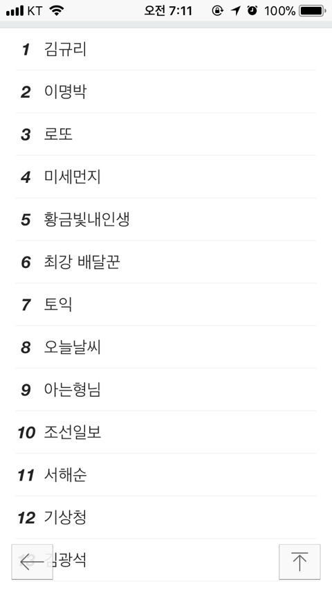 (이명박) 실시간 네이버 검색어 순위 작성자야임마뭐라고|작성시간17.09.24|조회수2,186 목록 댓글 0 글자크기 작게가 글자크기 크게가 분명 1위인데 2위로 나오는중 다음검색 현재 게시글 추가 기능 열기 북마크 공유하기 신고 센터로 신고 댓글 댓글 0 댓글쓰기 답글쓰기 댓글 리스트