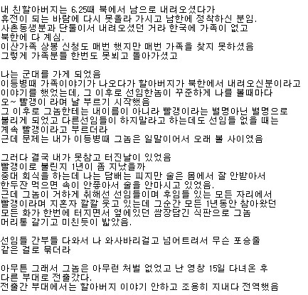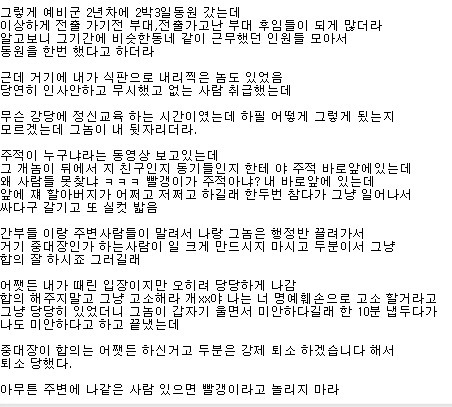 예비군 강제퇴소 당한썰 작성자Walcott 14|작성시간17.11.21|조회수2,175 목록 댓글 3 글자크기 작게가 글자크기 크게가 세상은넓고..돌... 많다 다음검색 현재 게시글 추가 기능 열기 북마크 공유하기 신고 센터로 신고 댓글 댓글 3 댓글쓰기 답글쓰기 댓글 리스트 작성자헐크 | 작성시간 17.11.21 진짜존나맞아야지 작성자Paul Pogba | 작성시간 17.11.21 쳐맞고도 정신 못차려서 또맞았네 ㅋㅋㅋㅋㅋ 작성자개소리하는 놈한테 개짖는 멍멍이 | 작성시간 17.11.21 미틴놈이 많이있긴있음.. 댓글 전체보기