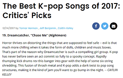 심지어 빌보드 평론가들이 뽑은 2017 베스트 케이팝 20 목록에도 있음;