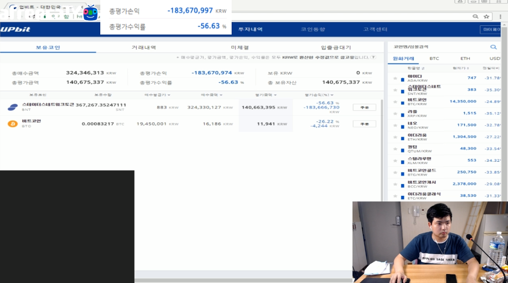 [기타]현시각 코인 투자한 BJ 상황 작성자로 제|작성시간18.01.17|조회수176,294 목록 댓글 6 글자크기 작게가 글자크기 크게가 BJ빡유 다음검색 현재 게시글 추가 기능 열기 북마크 공유하기 신고 센터로 신고 댓글 댓글 6 댓글쓰기 답글쓰기 댓글 리스트 작성자첼바라기 | 작성시간 18.01.17 헐 작성자웅밥해 | 작성시간 18.01.17 가즈아! 삭제된 댓글입니다. 답댓글 작성자두목까치 김두현 | 작성시간 18.01.17 저도 가상화폐해본적 없지만 3억2천투자해서 수익률 -54% 1억 8천 손해봐서 현재자산 1억4천... 님말이 맞아요 작성자포워드 | 작성시간 18.01.17 와 슨트 880층에서 3억 투입이라니 ㄷㄷ 댓글 전체보기