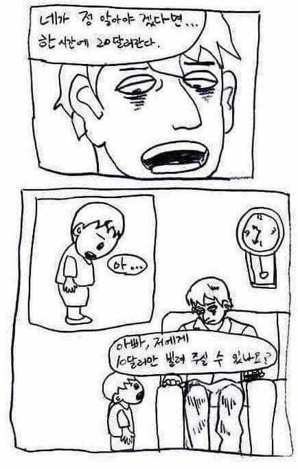 아빠의 시간을 한 시간만 살 수 있을까요? 작성자얼드싸커|작성시간16.07.16|조회수1,371 목록 댓글 6 글자크기 작게가 글자크기 크게가 ㅋㅋㅋㅋㅋㅋㅋㅋ 다음검색 현재 게시글 추가 기능 열기 북마크 공유하기 신고 센터로 신고 댓글 댓글 6 댓글쓰기 답글쓰기 댓글 리스트 작성자마빡 | 작성시간 16.07.16 아 울컥했다가 ㅋㅋㅋㅋㅋㅋ 작성자고추 | 작성시간 16.07.16 ㅋㅋㅋ 애가 쎄네 작성자잊혀진계절 | 작성시간 16.07.16 ㅋㅋㅋㅋㅋㅋㅋㅋㅋㅋ 작성자Nemanja Vidic | 작성시간 16.07.16 아 감동파괴ㅋㄹㄹㅋㅋㅋ 작성자How I Met Your Mata | 작성시간 16.07.16 ㅋㅋㅋㅋㅋㅋㅋㅋㅋㅋㅋㅋㅋㅋㅋㅋ 댓글 전체보기