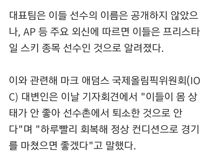선수촌만 나왕지 경기는 예정대로 한답니다!