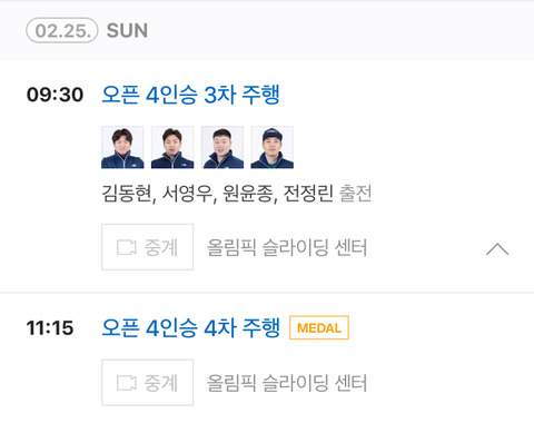 내일 컬링/봅슬레이 경기시각 작성자김 승 대|작성시간18.02.24|조회수1,742 목록 댓글 7 글자크기 작게가 글자크기 크게가 컬링봅슬레이4인승- 현재 2위 기록중 다음검색 현재 게시글 추가 기능 열기 북마크 공유하기 신고 센터로 신고 댓글 댓글 7 댓글쓰기 답글쓰기 댓글 리스트 작성자하마베 미나미 | 작성시간 18.02.24 금2개 가즈아아아아아 작성자캭막장 | 작성시간 18.02.24 토익 ㅠ 작성자마이클잭슨 | 작성시간 18.02.24 봅슬레이 ㄷㄷㄷ 작성자AC MILAN | 작성시간 18.02.24 개인적으로 봅슬~ 컬링이길 바랬는데 작성자펩X블루문 | 작성시간 18.02.24 열심히 노력한만큼 금두개 가즈아!!! 댓글 전체보기