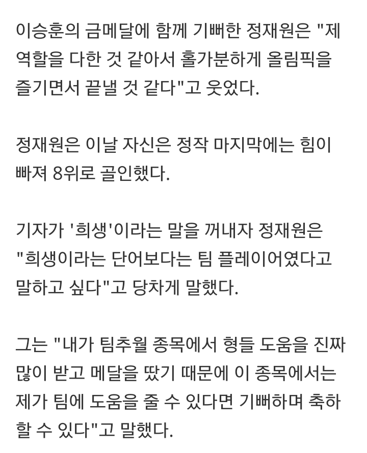 [올림픽] 정재원 "희생 아닌 팀플레이…팀추월에선 도움 받았으니" 작성자Seoul&liv|작성시간18.02.24|조회수3,849 목록 댓글 56 글자크기 작게가 글자크기 크게가 http://m.sports.naver.com/pc2018/news/read.nhn?oid=001&aid=0009920188 다음검색 현재 게시글 추가 기능 열기 북마크 공유하기 신고 센터로 신고 댓글 댓글 56 댓글쓰기 답글쓰기 댓글 리스트 작성자leechungyong | 작성시간 18.02.24 오구오구ㅜㅜ예뻐라 넌분명더잘될거야!!! 작성자NeVeR-EnD | 작성시간 18.02.24 작성자트와이스 | 작성시간 18.02.25 근본ㄷㄷ 작성자jjuya | 작성시간 18.02.25 이쁘네 작성자뫼비우스쎄오 | 작성시간 18.02.25 진짜 본 받아야할 멘탈이다 댓글 전체보기