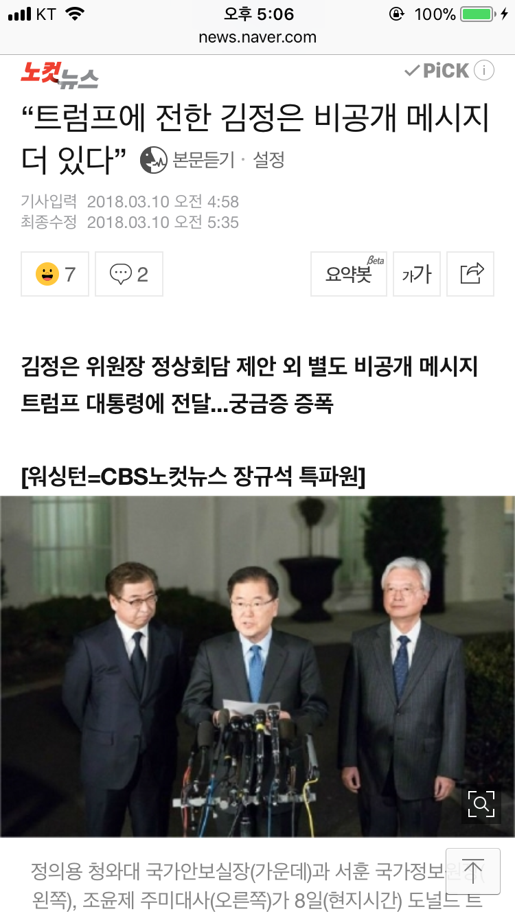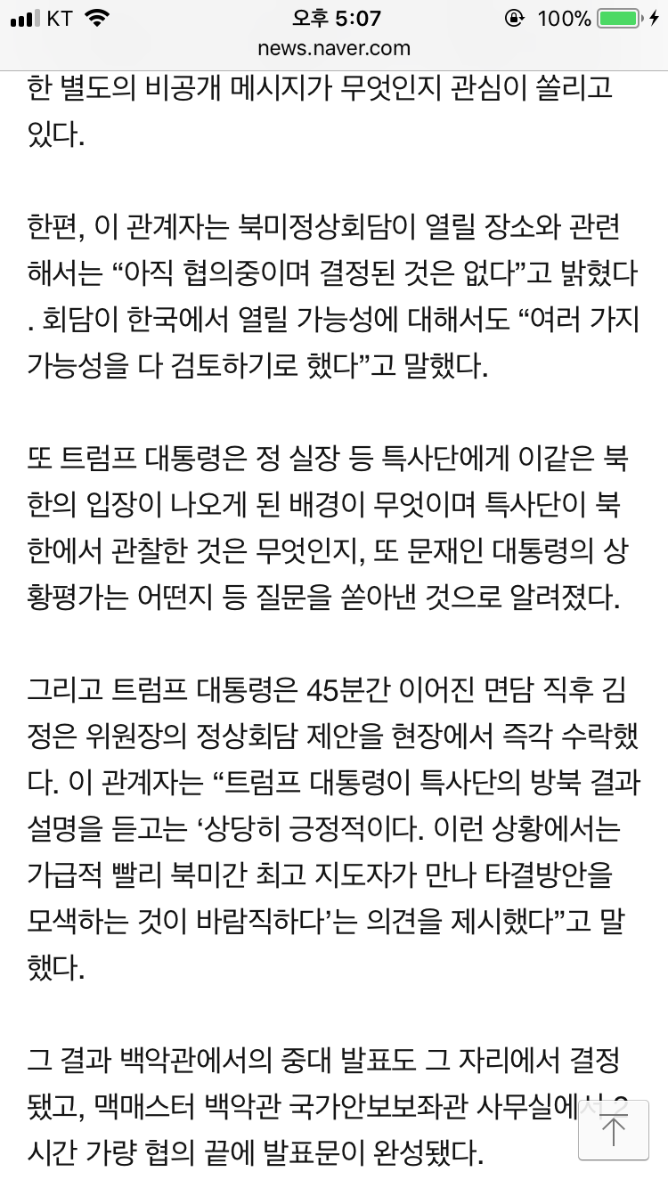 “트럼프에 전한 김정은 비공개 메시지 더 있다” 작성자Darth Vader|작성시간18.03.10|조회수1,656 목록 댓글 10 글자크기 작게가 글자크기 크게가 “트럼프에 전한 김정은 비공개 메시지 더 있다”http://m.news.naver.com/read.nhn?mode=LSD&mid=sec&sid1=104&oid=079&aid=0003077422 다음검색 현재 게시글 추가 기능 열기 북마크 공유하기 신고 센터로 신고 댓글 댓글 10 댓글쓰기 답글쓰기 댓글 리스트 작성자수제천 | 작성시간 18.03.10 궁금하긴하다 작성자Emilio Butragueño | 작성시간 18.03.10 햄버거 먹방 같이 ㄱㄱ? 작성자Suzy | 작성시간 18.03.10 뭐지 작성자고라바덕 | 작성시간 18.03.10 올때메로나 작성자Lars Bender | 작성시간 18.03.10 진짜 중요한것들은 비공개했을듯 ㅋㅋㅋㅋ 댓글 전체보기