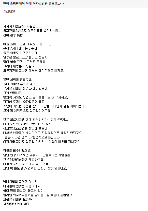 작성자꽃삼 작성시간 18.03.21 여경이 약해보이는건 있긴 하네요 이것도 편견이겠지만 공권력을 집행하는데 있어서는 걸림돌이 될수도