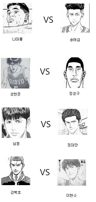 작성자감성보컬 작성시간 16.07.21 정대만 남훈은 진짜 재밌겠네요 둘다 스코어러타입에 수비력도 갖췄고신장도 똑같이 184 결정적으로 둘다 서태웅이랑 1on1을해봤다는것으로 간접체험해볼때 박빙일듯