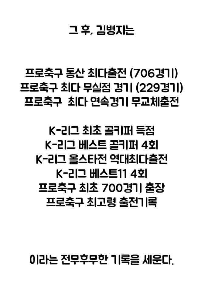 "내 뒤에 공은 없다" - 김병지 작성자아모트|작성시간16.07.21|조회수1,366 목록 댓글 6 글자크기 작게가 글자크기 크게가 https://m.facebook.com/story.php?story_fbid=616910221822008&id=125399357639766 다음검색 현재 게시글 추가 기능 열기 북마크 공유하기 신고 센터로 신고 댓글 댓글 6 댓글쓰기 답글쓰기 댓글 리스트 작성자Chiellini | 작성시간 16.07.21 김병지 술 잘먹는다던데?? 작성자인간성생활 | 작성시간 16.07.21 수고하셨어요. 작성자동물칭쿠칭쿠 | 작성시간 16.07.21 공 많던데 작성자너는나의빛 | 작성시간 16.07.21 그동안 수고하셨습니다 작성자부서진입가에머물다 | 작성시간 16.07.21 진짜멋짐 댓글 전체보기