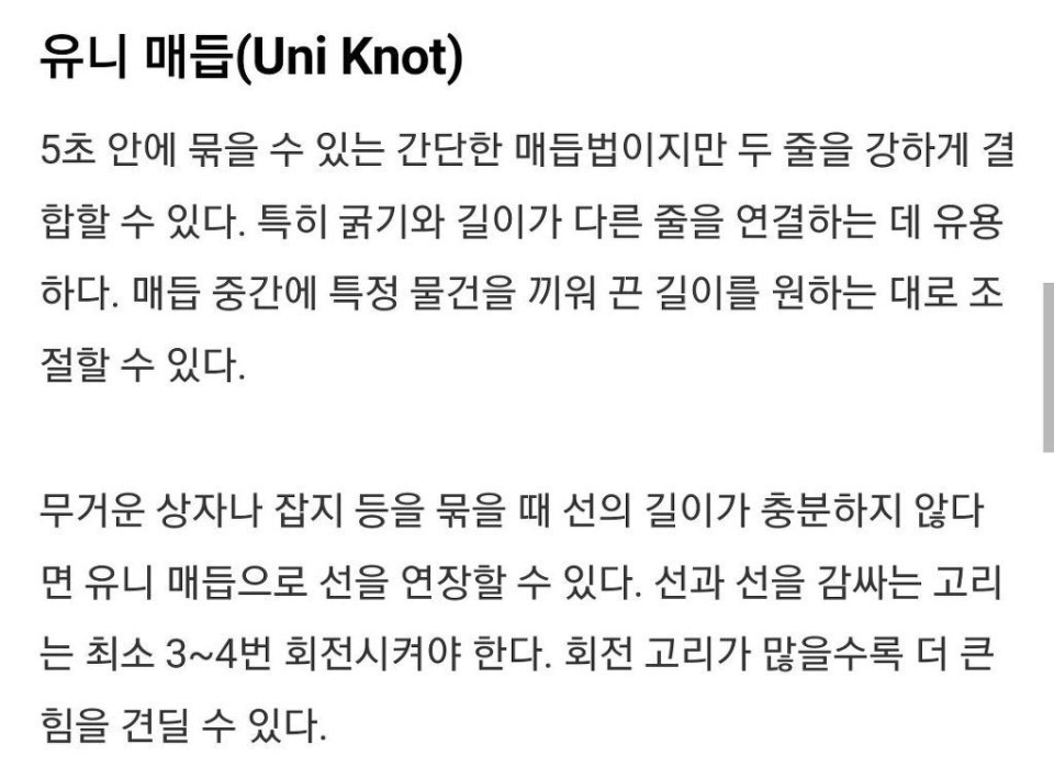 실생활에 유용한 매듭 묶는법 작성자아 이 유|작성시간18.03.29|조회수1,801 목록 댓글 21 글자크기 작게가 글자크기 크게가 . 다음검색 현재 게시글 추가 기능 열기 북마크 공유하기 신고 센터로 신고 댓글 댓글 21 댓글쓰기 답글쓰기 댓글 리스트 작성자태희 | 작성시간 18.03.30 매듭 ㄷㄱㅈ 작성자NEWBALANCE | 작성시간 18.03.30 매듭법 작성자미남김선생 | 작성시간 18.03.30 매듭 작성자밝은세상이여오라 | 작성시간 18.03.30 w d 실생활 활용 매듭법 작성자MBC.I.V.A | 작성시간 18.03.30 매듭 댓글 전체보기