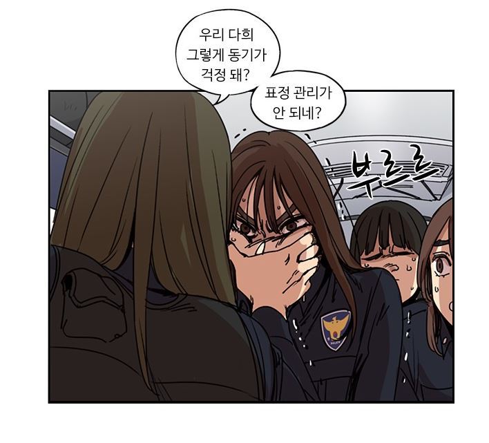 기분 나쁘게 볼따구를 꼬집음 선임이라 아무말도 못함..