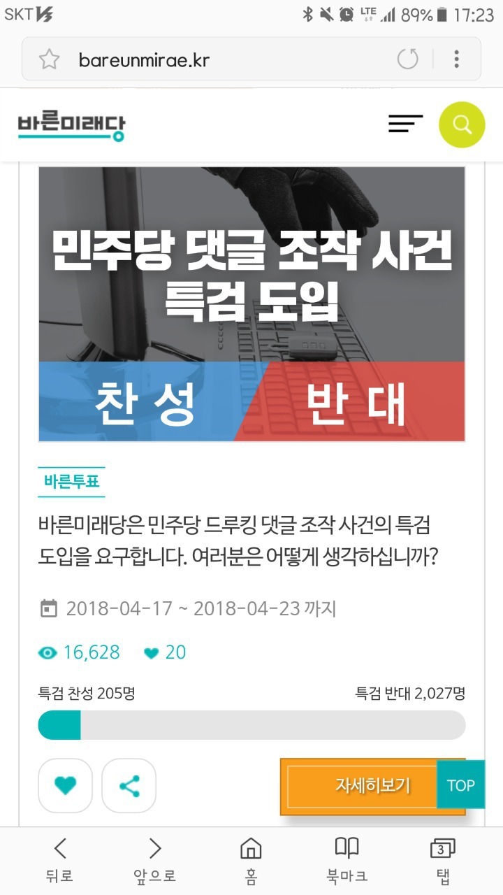 바미당 홈피 특검투표 3단계 날짜 조작 작성자Suzy|작성시간18.04.20|조회수939 목록 댓글 4 글자크기 작게가 글자크기 크게가 19일?????출처 더쿠 다음검색 현재 게시글 추가 기능 열기 북마크 공유하기 신고 센터로 신고 댓글 댓글 4 댓글쓰기 답글쓰기 댓글 리스트 작성자문재인❤ | 작성시간 18.04.20 이런 조작엔 관대하지 ㅋㅋㅋㅋㅋ 쓰레기들정상 비정상의 문제를 시각의 편협함으로 묻어가려함 부역자 시다바리들이 작성자토템풋볼 | 작성시간 18.04.20 지들 행동에는 한없이 너그러움 ㅎ 작성자케나 | 작성시간 18.04.20 조작의당 ㅋㅋㅋㅋㅋㅋㅋ 작성자삼돌이2121 | 작성시간 18.04.20 역시 ㅋㅋㅋㅋㅋ 댓글 전체보기