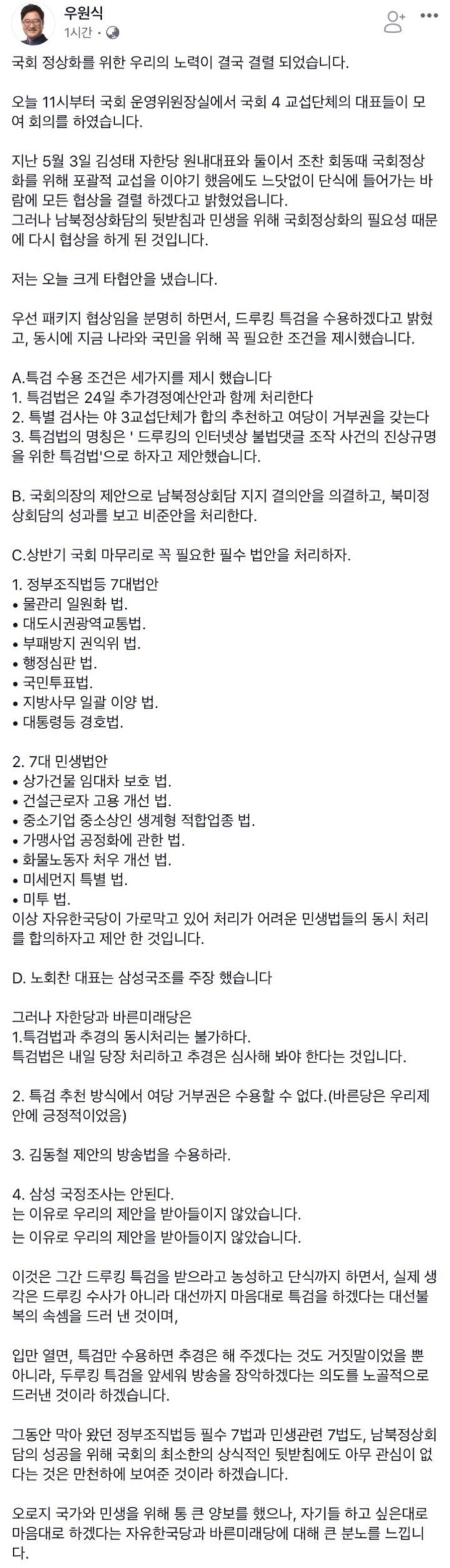 [정치]우원식 페북