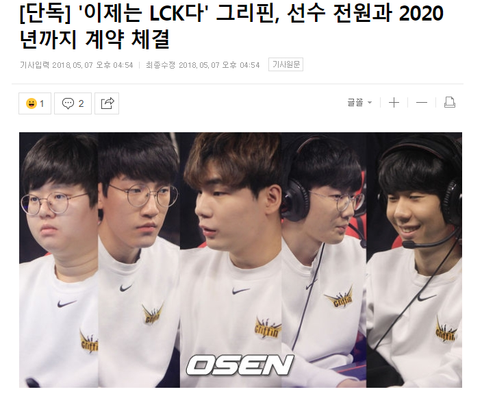 [게임][LOL/오피셜] LCK (롤챔스) 승격 그리핀, 선수전원과 2020년까지 계약체결 작성자쭈꾸미|작성시간18.05.07|조회수383 목록 댓글 1 글자크기 작게가 글자크기 크게가 http://sports.news.naver.com/esports/news/read.nhn?oid=109&aid=0003776727대기업 스폰이 들어온게 아니냐는 추측도.. 다음검색 현재 게시글 추가 기능 열기 북마크 공유하기 신고 센터로 신고 댓글 댓글 1 댓글쓰기 답글쓰기 댓글 리스트 작성자에픽하이 | 작성시간 18.05.07 2020년ㄷㄷㄷ 댓글 전체보기