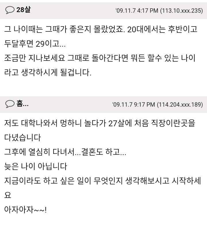28살 새로 시작하기엔 너무 많은 나이... 작성자박지성 지단 메시|작성시간18.06.04|조회수4,882 목록 댓글 17 글자크기 작게가 글자크기 크게가 . 다음검색 현재 게시글 추가 기능 열기 북마크 공유하기 신고 센터로 신고 댓글 댓글 17 댓글쓰기 답글쓰기 댓글 리스트 작성자그림쟁이 | 작성시간 18.06.04 28살에 대학교 입학했고 지금 남부럽지 않게 벌면서 잘살고있음 중간에 자존감 바닥쳐서 방황도 했지만 그 바닥친 경험도 소중하다고 생각함 작성자알라잇 | 작성시간 18.06.04 ㅠㅠ 작성자Di Natale | 작성시간 18.06.05 28살 작성자nskeke | 작성시간 18.06.05 ㄷㄱㅈ 작성자짜냥 | 작성시간 18.06.05 ㅠㅠ 댓글 전체보기