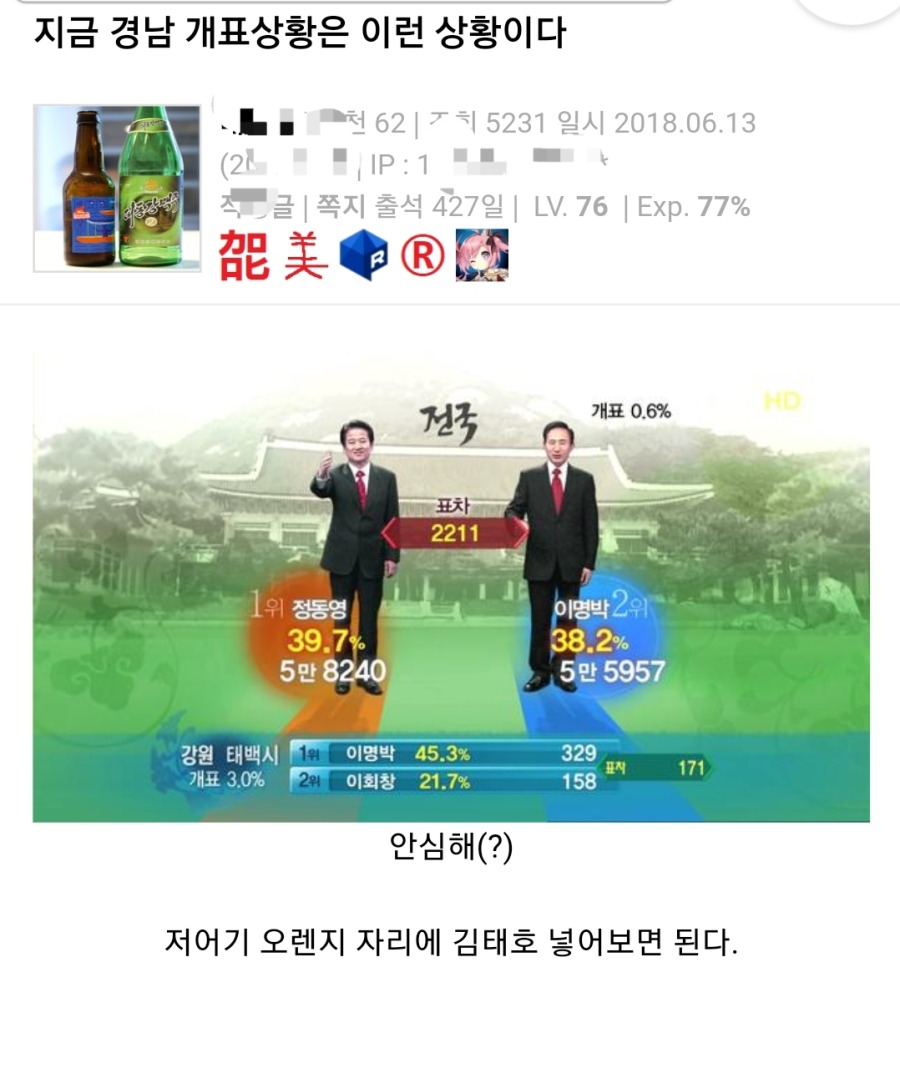 작성자BrUceKaNG 작성시간 18.06.13 이번 출구조사보고 뭔가 심심했는데..경남, 인천 역전 기다리면서 즐겨야겠다ㅎ