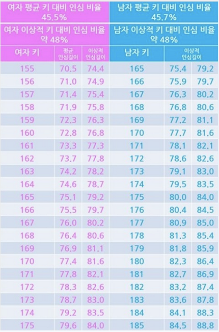 * 우리나라 남자 여자 다리길이 평균치* 입니다.