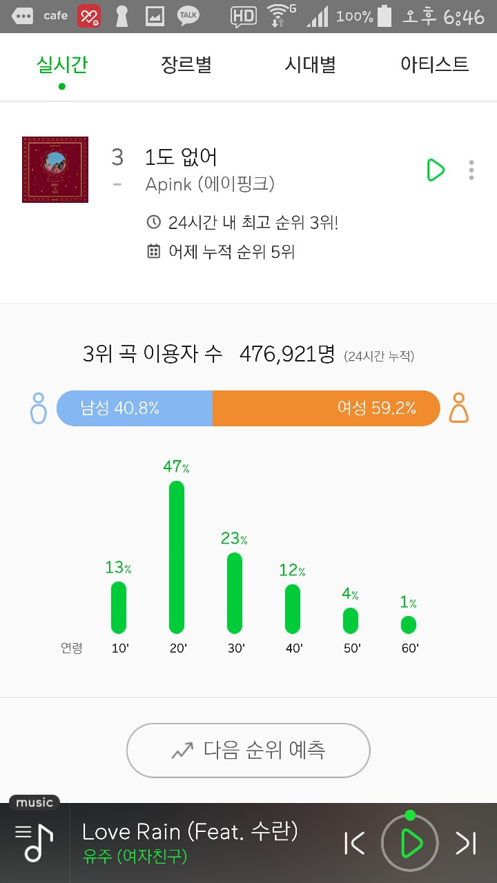 [아이돌]레알 멜론 6시 실시간 차트! 작성자GFRIEND은하|작성시간18.07.11|조회수1,266 목록 댓글 7 글자크기 작게가 글자크기 크게가 5시에 그래프권으로 올라선 에이핑크!6시에도 3위 유지중!7시에도 예측 3위!기세를 몰아서 1위까지 올라가기를! 다음검색 현재 게시글 추가 기능 열기 북마크 공유하기 신고 센터로 신고 댓글 댓글 7 댓글쓰기 답글쓰기 댓글 리스트 작성자Vivid | 작성시간 18.07.11 핑크핑크 작성자소녀시대 윤아 | 작성시간 18.07.11 1위 가즈아 작성자리넨 | 작성시간 18.07.11 ㄱㄱㄱㄱ 작성자아메리치노 | 작성시간 18.07.11 노래 넘나 좋음 작성자돌다리 | 작성시간 18.07.11 보미 신나겠네 ㅊㅊㅊ 댓글 전체보기