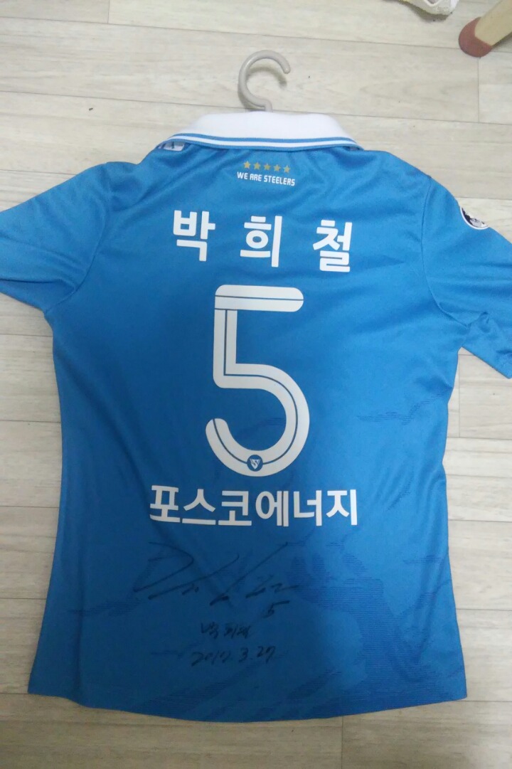 포항의 상징 호미곶이 담겨있습니다 박희철선수 친필싸인...지난시즌 도중에 떠났지만 마킹에 후회는 없습니다. 제 첫 유니폼이라 평생 보물1호겠죠.. 김승대 마킹한 올시즌 유니폼도 빨리 오기를ㅎㅎ