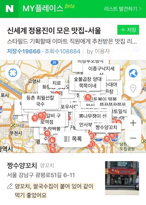 [정보]'신세계 정용진 맛집 리스트'로 불리는.... 작성자롬새룩스메아|작성시간18.12.08|조회수7,201 목록 댓글 240 글자크기 작게가 글자크기 크게가 스타필드 기획 때 사내 인트라넷을 통해 만들었다는 맛집 목록절대 기준은 아니니 참고사항으로...서울 http://naver.me/xUDJvQk9경기1편 http://naver.me/F10RdYT3경기2편 http://naver.me/5c5Z0MdD인천 http://naver.me/GSpkmqRX강원 http://naver.me/5SgUqicj제주 http://naver.me/xogwk903충북 http://naver.me/5acI1TeT충남 http://naver.me/FfG4LoLG전북 http://naver.me/xsAvLbgm전남 http://naver.me/5eMO2QFN울산 http://naver.me/GOjx8K5Z부산 http://naver.me/FbcB510X대전 http://naver.me/584hXBxk대구 http://naver.me/5YJnjE7p광주 http://naver.me/5c5Z0yrh경북 http://naver.me/GQmKh9Dj경남 http://naver.me/G0COTAhJ.... 다음검색 현재 게시글 추가 기능 열기 북마크 공유하기 신고 센터로 신고 댓글 댓글 240 댓글쓰기 답글쓰기 댓글 리스트 작성자봉선동호랭이 | 작성시간 19.07.15 정용진 전국맛집 답댓글 작성자Romsae_Lux_Mea 작성자 본인 여부 작성자 | 작성시간 19.07.22 ㄷㄱ 정용진 맛집 리스트 작성자육체노동의 가치 | 작성시간 19.07.22 ㄷㄱ 답댓글 작성자Romsae_Lux_Mea 작성자 본인 여부 작성자 | 작성시간 19.07.22 ㄷㄱ 정용진 맛집 리스트 작성자슈퍼 마리오 | 작성시간 19.12.13 감사용! 댓글 전체보기