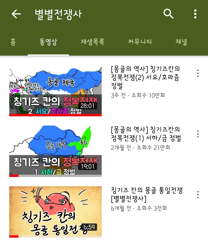 마찬가지로 직접 그린 그림들과 직접 나레이션까지 하는 채널임. 아직 몽골 연재중인 신인 유튜버