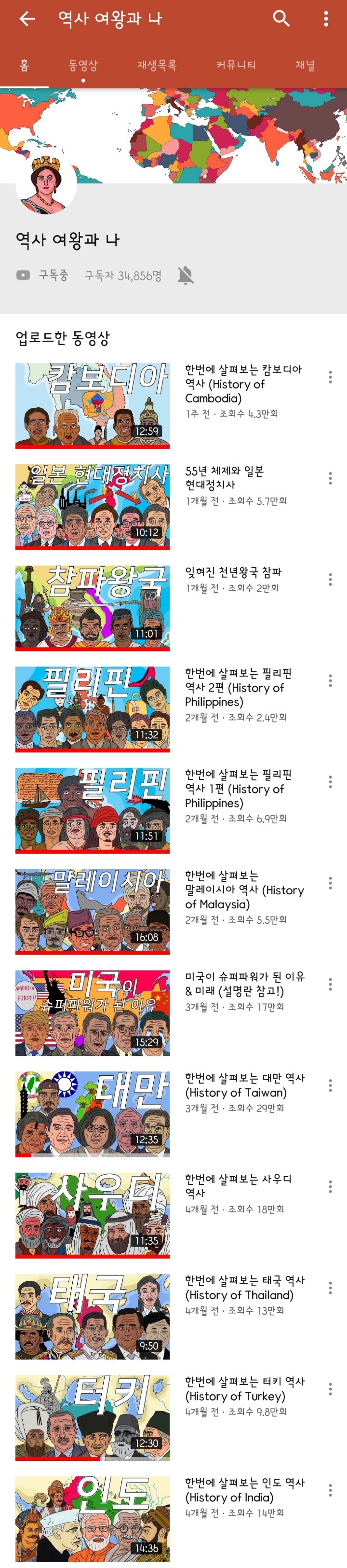 직접 그린 그림들과 시대별 영토까지 자세히 그린 정성과 중립을 지키며 설명하는등 높은 퀄리티를 보여줌, 또한 교과서에 안나오는 나라들의 역사를 설명해준다는게 큰 장점중 하나