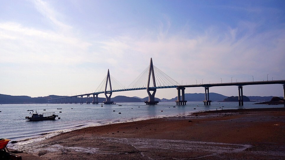 충남 보령의 원산도와 충남 태안 안면도 영목항을 잇는 다리로 국도 제77호선 3차로+인도 1.75km의 사장교입니다. 서해안을 가로질러 보령과 태안을 가깝게 잇는 다리로 원산도를 가기 위해서 배를 타고 이동하던 것을 현재 보령 해저터널이 개통되므로 인해서 보령-원산도-영목항까지 자동차로 20분이 채 걸리지 않는 거리로 가까워진 교량입니다.