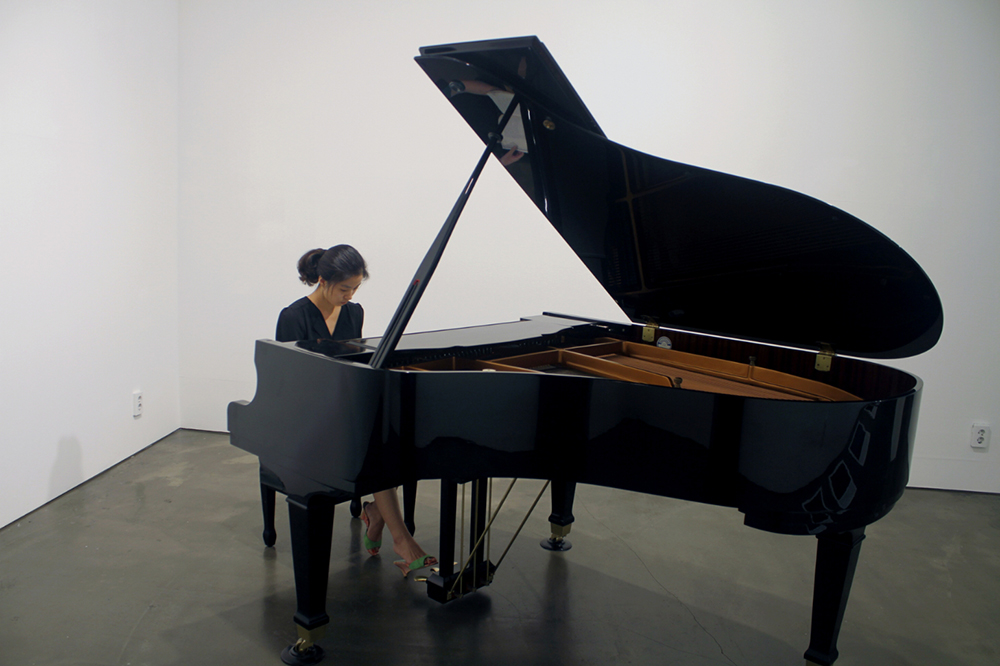 노동 관계, 계약 관계, 협업 관계 등 예술 작업을 완성해가는 과정도 사회 구조와 비슷한 구석이 있어요. [2’33”]에서는 그랜드피아노가 놓인 전시장에 전문 피아니스트를 고용해 두고 닳아빠진 음악 중에 하나인 ‘엘리제를 위하여’를 연주하고 싶을 때 연주해달라고 주문했어요. 누군가가 일부러 부탁하거나 제가 등장했을 때와 같이 그녀가 중요하게 여긴 몇몇 순간을 제외하고는 거의 연주를 하지 않더라고요. 대부분의 시간 그녀는 책을 펴놓고 공부하거나 독서를 하는 것 같았어요. 그리고 넓지 않은 전시장에 놓인, 상대적으로 큰 그랜드피아노와 그 앞에 앉아 있는 피아니스트는 관객들에게 굉장히 지루하게 느껴졌을 거예요. ‘돈을 얼마나 받길래 온종일 저렇게 앉아 있나?’ 라는 생각을 한 사람도 분명 있었을 거고요. 작가가 퍼포먼스를 고용하고 무언가를 지시하면 그들은 고용되었기 때문에 불편함을 감수하고 견뎌내야 하는 지점이 있죠. 바로 그 모순적 관계를 드러내는 것이 목표였어요. 함께 전시된 [쉽게 끝나지 않는 순간(Indestructible moment)]도 마찬가지예요. 구두닦이 아저씨가 제 구두를 닦는 퍼포먼스인데, 메트로놈 소리를 넣어 전시장에 틀어두고 저는 전시 오프닝에서 그 영상 속 구두를 신고 다녔어요. 누군가가 내 작업을 위해 시간을 들여 노동을 하지만 결국 그 빛나는 구두를 신고 다니는 것은 저라는 것을 보여주고 싶었던 거죠.