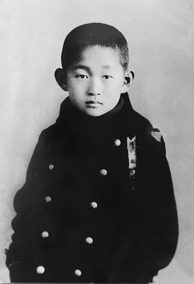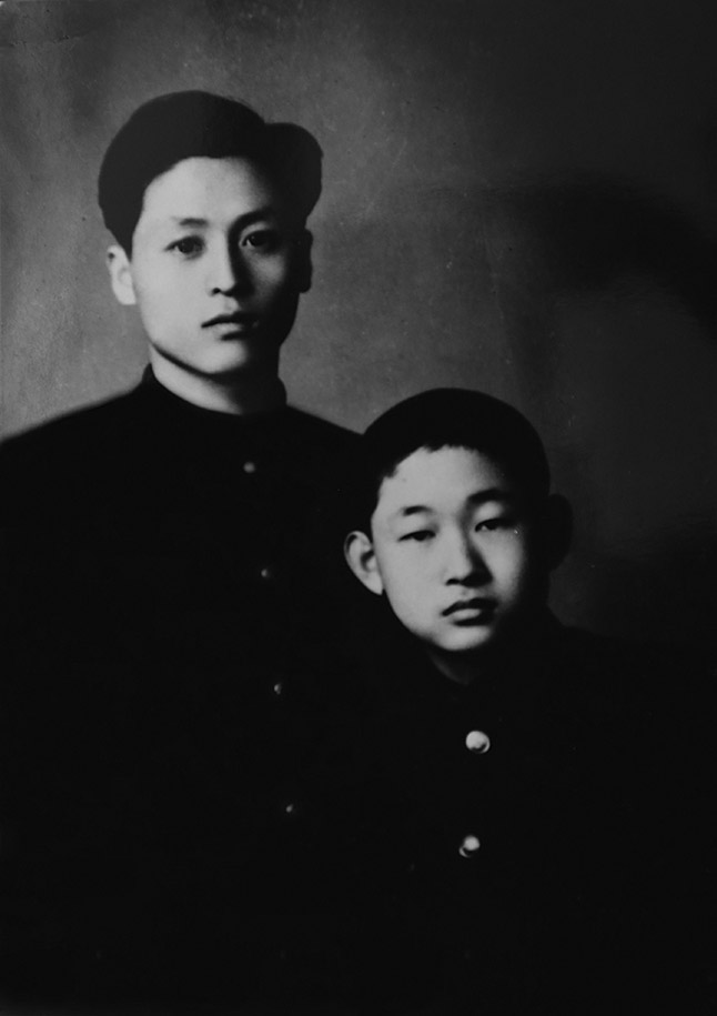 1945년 국민학교 3학년 때 집에서 애견과 함께 찍은 사진. 어머니가 동물을 기르는 일을 좋아하셔서 항상 집에는 개가 여러 마리 있었다. 어머니는 항상 밝고 긍정적인 성정이셨고, 아버지는 사업을 하던 과묵한 분이었는데 아들이 가야금을 배우고자 할 때 처음에는 말렸지만 이내 “네 인생은 네가 책임지는 것”이라며 믿어주셨다.