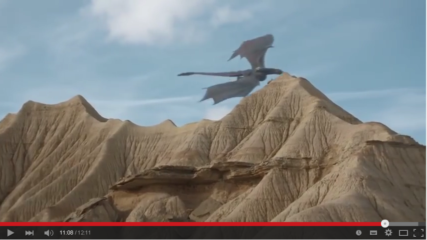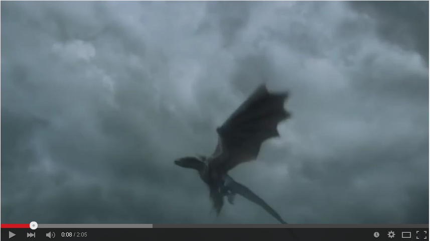 # 참고사진 : 대너리스가 도드락키 평원에서 드로곤을 탔을때의 영상. 드르곤의 색깔이 검은색이긴 하지만 날개는 붉은 빛을 띠고 있습니다. 그렇다면 위의 드래곤이 역사상의 다른 드래곤이 아니라 대너리스의 드로곤일 확률이 높습니다.