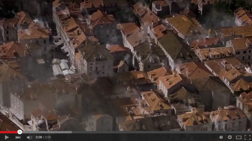 : 드래곤의 그림자가 건물위로 드리워지는 장면. 건물의 형태와 밀집정도를 보면 이건 킹스랜딩이 맞을 것 같습니다.