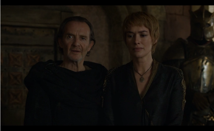 : 토멘왕이 새로운 법령을 발표하는 자리에서 토멘 왕에게 가까이 가려하지만, 핸드인 케반에게 제지당합니다. 그리고 놀랍게도 토멘왕은 앞으로는 "결투에 의한 재판"을 앞으로는 금지할것이라고 발표하네요. 세르세이의 재판에서 마운틴이 결투에 의한 재판에 나올 수 없도록 하겠다는 거죠. 하이스패로우의 계략이겠죠..