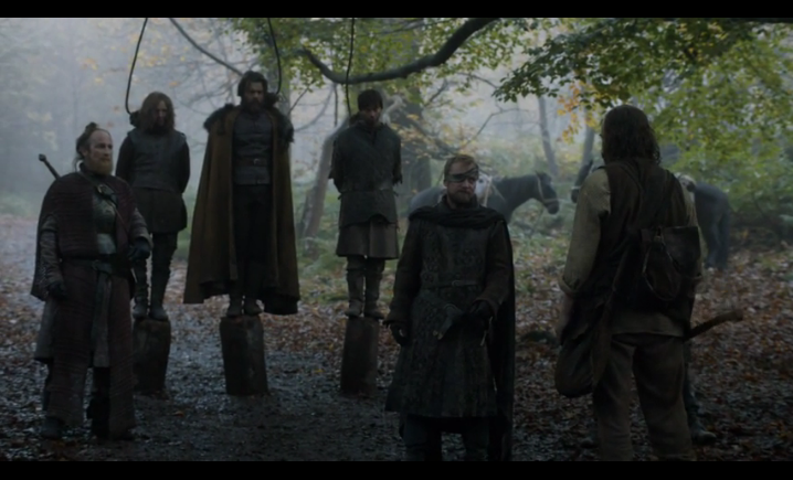 : 무법자 집단으로 완전히 변한 것으로 예상했지만 형제단의 단장인 베릭은 민간인을 공격하고 살인한 단원들을 이미 색출하고 처형을 준비하고 있었습니다. 그래서 충돌은 없었습니다. 오히려 베릭은 하운드에게 형제단에 가입할것을 권유합니다.