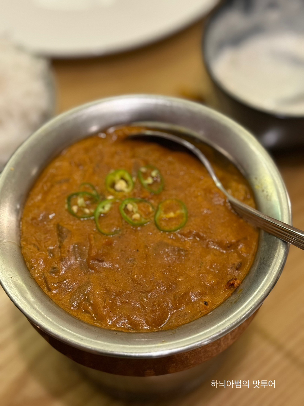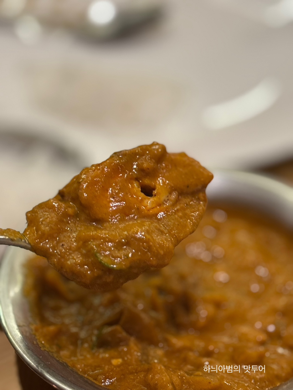 뼈없는 닭고기탄두리에 매콤한 양파 마살라를 넣은 커리~