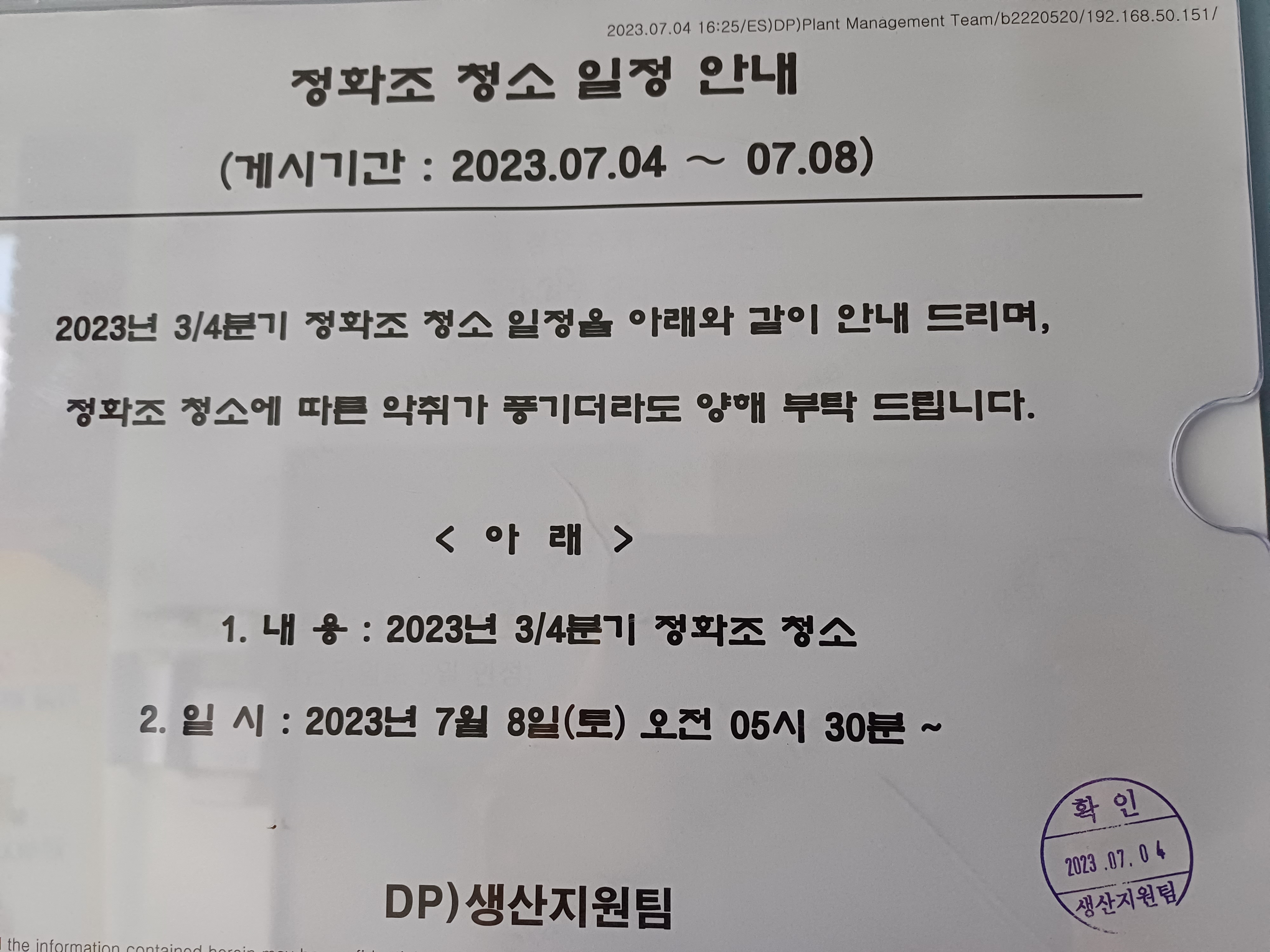 정화조 청소 일정 안내 작성자권영한|작성시간23.07.05|조회수16 목록 댓글 0 글자크기 작게가 글자크기 크게가 한국앤컴퍼니ES 대전공장 다음검색 현재 게시글 추가 기능 열기 북마크 공유하기 신고 센터로 신고 댓글 댓글 0 댓글쓰기 답글쓰기 댓글 리스트