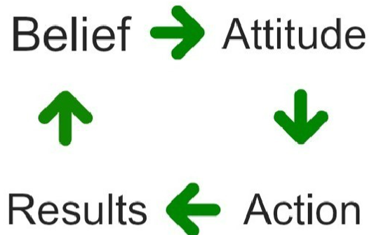 해결해야할 학습이나 과제가 주어졌을 때 어떤 사람은 이 일을 통해 성장할 도전임과 동시에 세상에 기여할 기회로 바라보며 긍정적 태도를 표출하는 반면, 어떤 이들은 매우 부정적 태도로 일관하기도 한다. 이러한 태도는 세상에 대한 신념이 세상을 바라보는 태도를, 사람에 대한 신념이 사람을 바라보는 태도를, 직면하는 문제에 대한 자기 믿음이 문제를 바라보는 태도를 결정한 결과 일 것이다. 그리고 이 태도는 그 사람의 행동을 결정하고, 그 행동은 다시 결과에 영향을 미치며 또 다시 신념에 영향을 미치는 순환 과정을 만든다.
