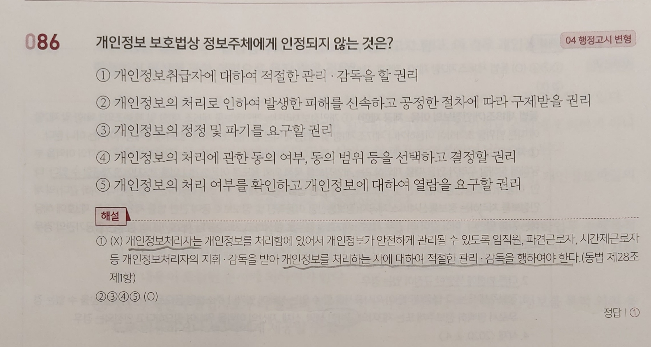개인정보 보호법 작성자휘뚜리|작성시간21.12.13|조회수68 목록 댓글 1 글자크기 작게가 글자크기 크게가 1번 해설에 개인정보처리자는 ~~개인정보처리자의 지휘감독을 받아~~한다.어디가 틀린지 모르겠습니다... 다음검색 현재 게시글 추가 기능 열기 북마크 공유하기 신고 센터로 신고 댓글 댓글 1 댓글쓰기 답글쓰기 댓글 리스트 작성자윤우혁 | 작성시간 21.12.14 문제는 정보주체에게 인정되지 않는 것 입니다 관리 감독은 정보주체가 아니라 개이정보처리자가 합니다 댓글 전체보기