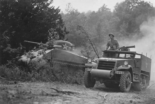 ↑M4 전차와 함께 이동 중인 M2 하프트랙