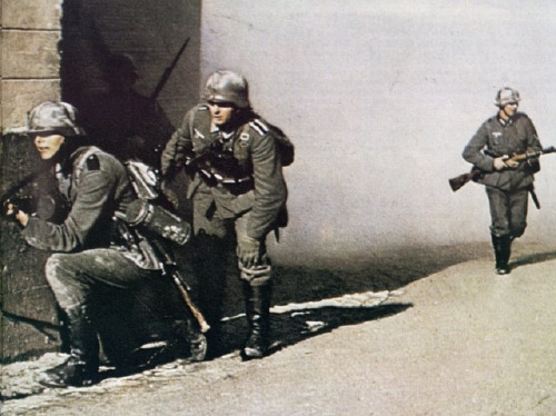 그런데 난사하는 인상적인 모습 때문인지 모르겠지만 MG42나 MP40 사격 장면(射擊場面)은 자주 Close up 되는 반면 정작 전쟁 내내 독일군이 가장 많이 사용한 소총(小銃)은 그저 그런 지나가는 장면 정도에나 등장합니다.