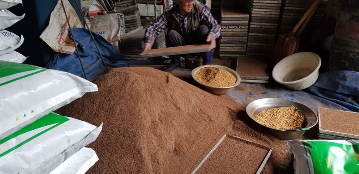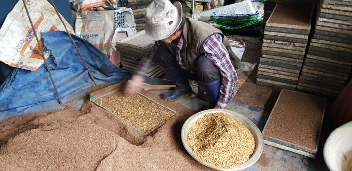 또 편리한 기계들도 있지만 우리 형님은 전통방식을 고집을 하셔서 이렇게 쭈구리고 모판을 짰네요
