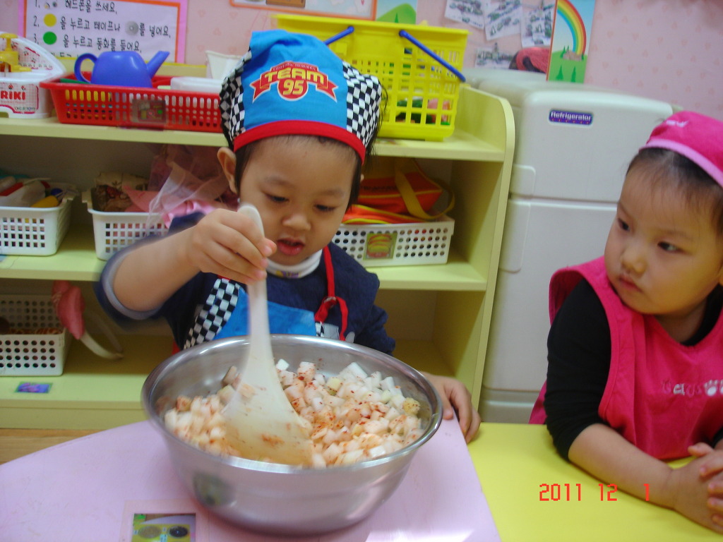 작성자송연맘 작성시간 11.12.04 송연이는 깍두기가 집에서 만든것보다 조금 매운데도 자기가 만들어서 인지 맵다 그러면서도 맛있다고 냠냠 맛있게 먹었네요. 아빠, 엄마도 먹으라고 주고 심지어 동생에게도 먹으라고 주려고 했어요.ㅎㅎㅎ