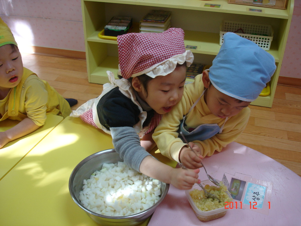 작성자하은맘 작성시간 11.12.28 썰자썰자 .. 깍둑.. 썰자.. 집에와서 보여주고 맛을 보았는데.. 넘 맛있더라구요..