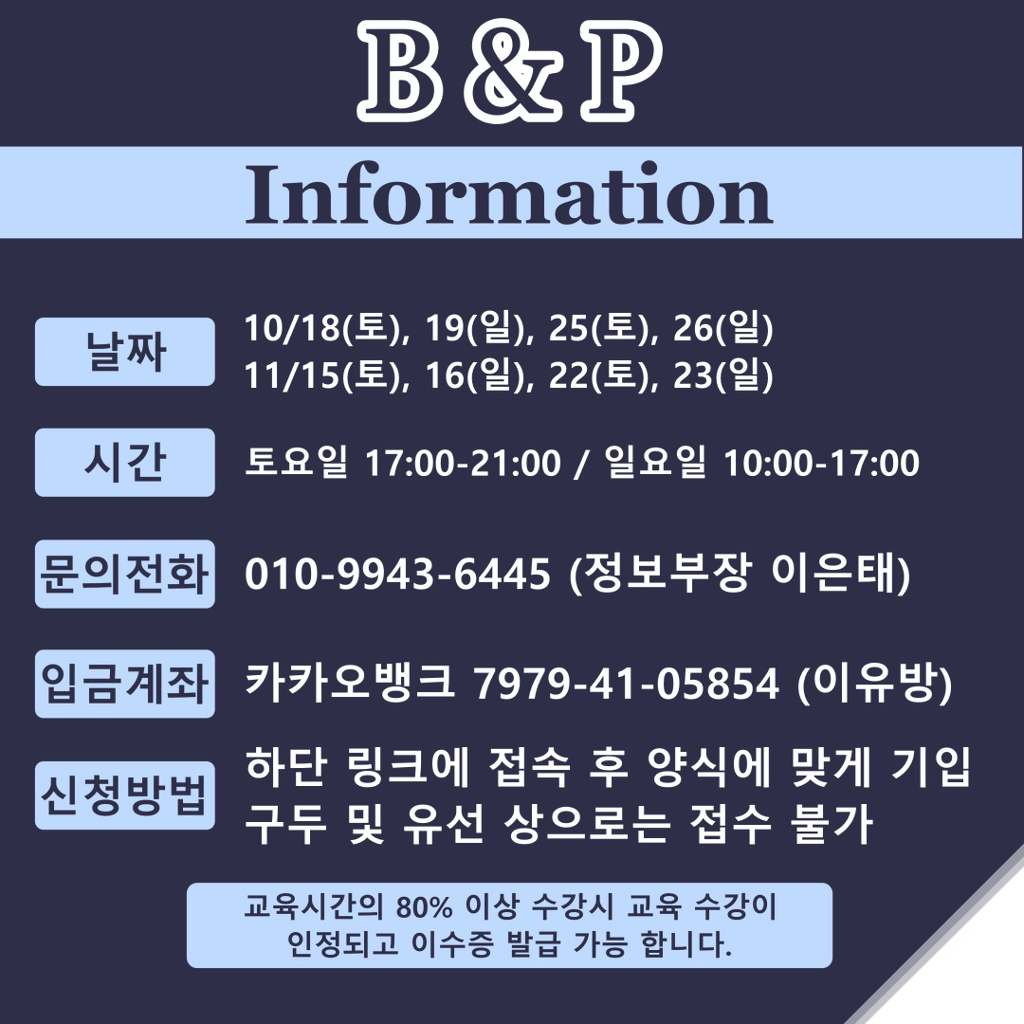 [2025년 10월] Breathing & Posture alignment 교육 개최안내 작성자정보부장 이은태|작성시간25.09.14|조회수103 목록 댓글 0 글자크기 작게가 글자크기 크게가 수강신청 링크https://forms.gle/N8jNsHMJAG7VH2YV6 다음검색 현재 게시글 추가 기능 열기 북마크 신고 센터로 신고 댓글 댓글 0 댓글쓰기 답글쓰기 댓글 리스트
