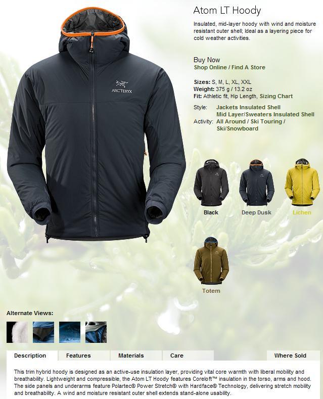 아크테릭스 아톰 LT 후디 (멋을 아는 남자용)