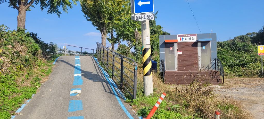3,7km 지점에 있는 화장실 깨끗하게 관리돼 있다.