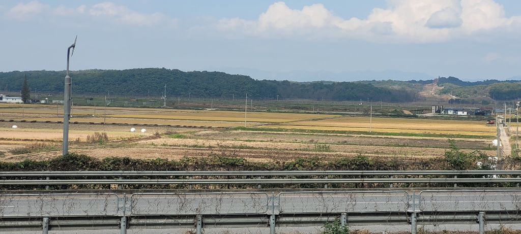 넋 놓고 좌측 북한의 산을 보고 걷다 또아리 틀고 뱀을 밟을뻔 했네요.