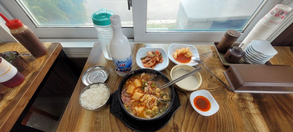 종료지점에 있는 식당서 돼지국밥과 막걸리.
